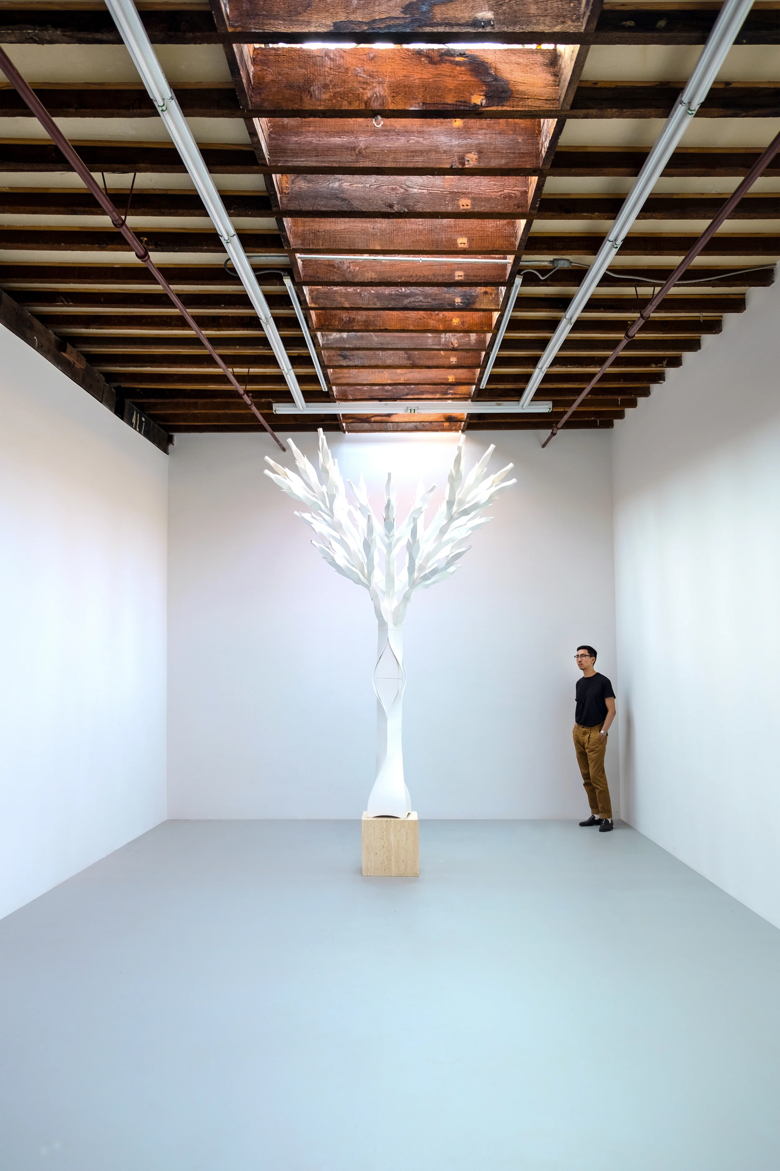 070116 And Then Tree of Life Compositional Study Seven: Infinite Symmetree, 2016, Hand casted polyurethane resin, hand-dyed polyamide, aerosol spray paint, poly ester resin, aluminum pipe, steel, copper pipe, 115” x 81” x 81” (Pedestal is not included)